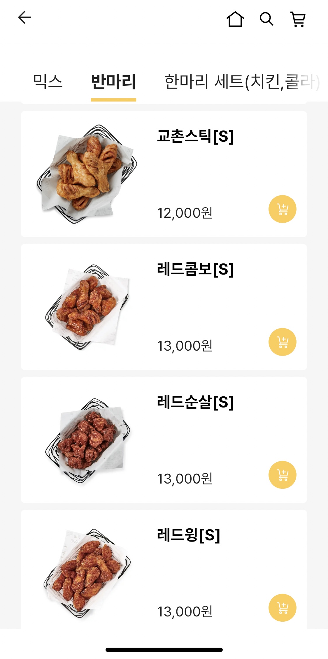 교촌은 주로 허니콤보를 먹는 편인데 아쉽게도 허니콤보는 반마리가 없다. 순살은 있는데 뼈는 없음. 탈락