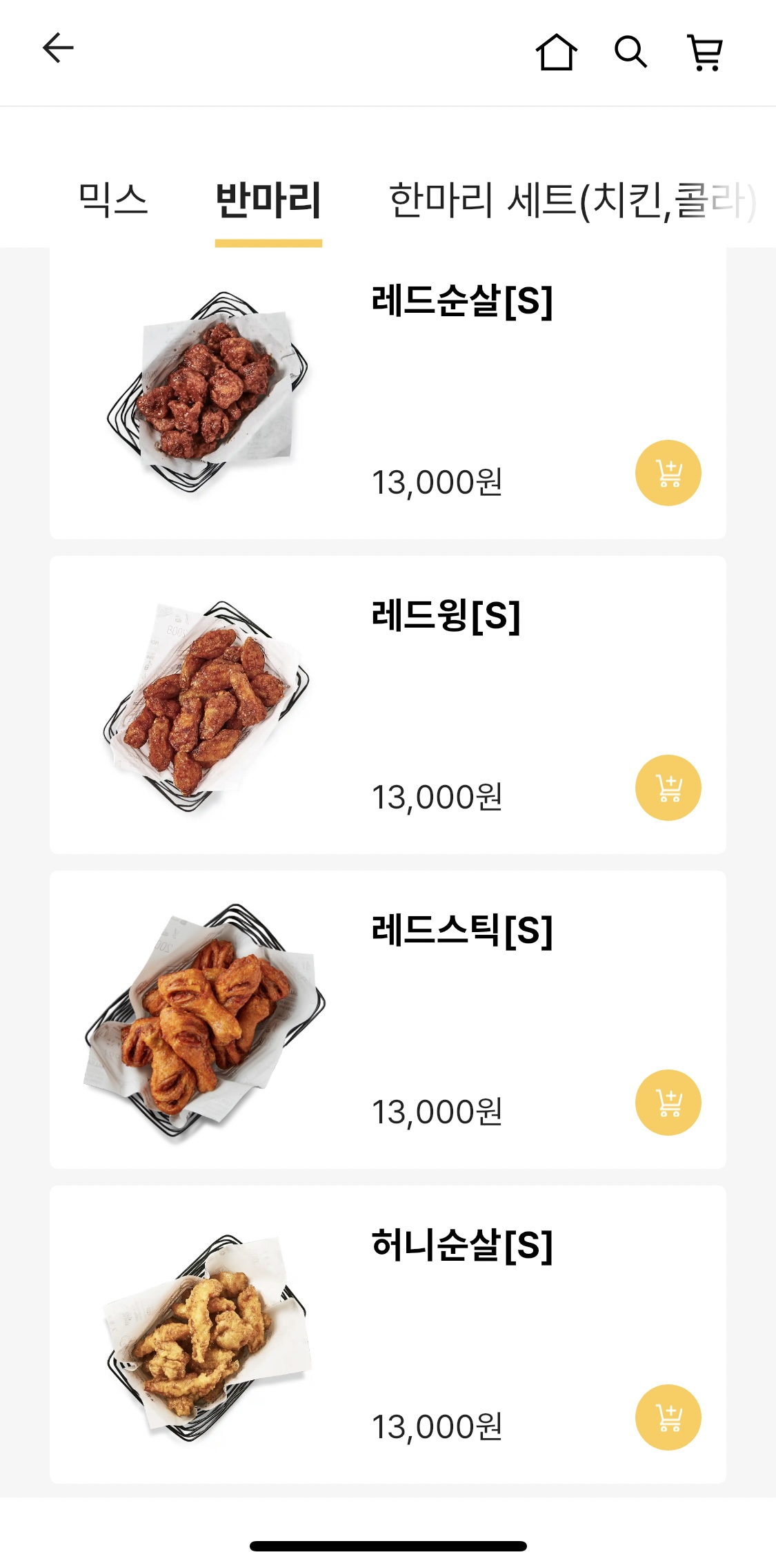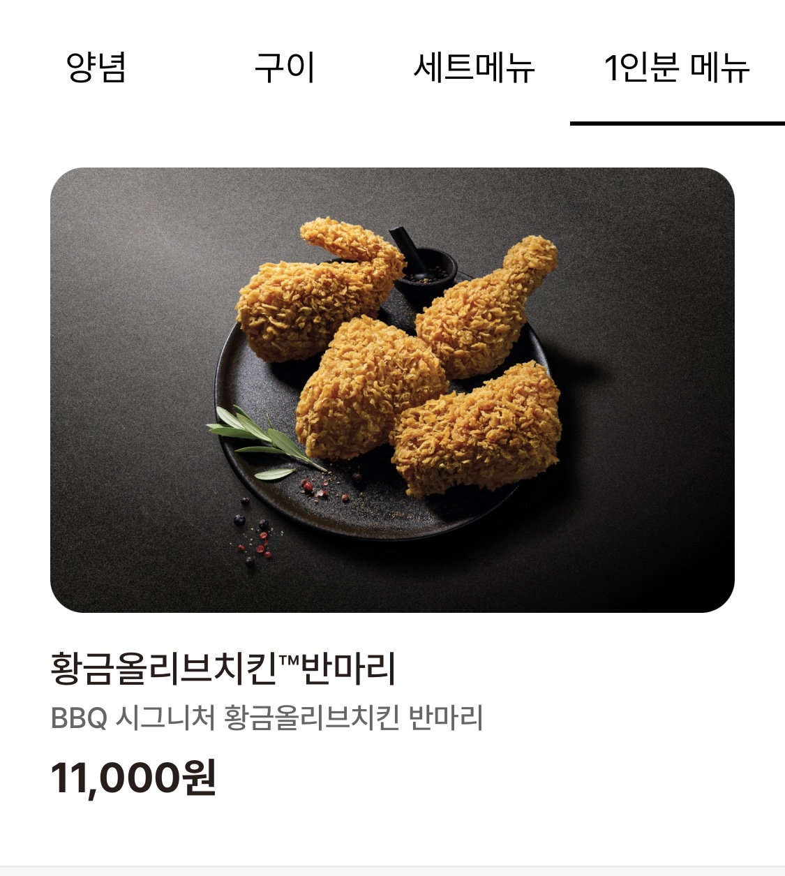 BBQ치킨 반마리 메뉴 보기
